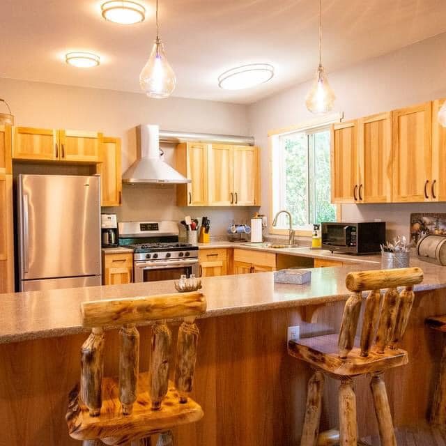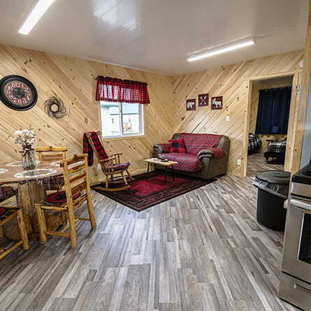 Cabins are all furnished and include full kitchen facilities, washroom and shower. Bed linens, blankets, pots, pans, dishes, coffee makers and cutlery are all provided for our guests’ convenience. Missing something you need? Just ask!