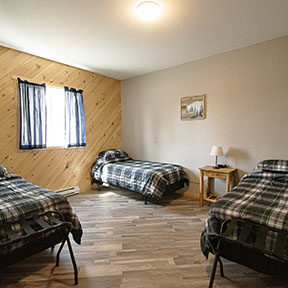 Tall Timbers has three bedrooms and sleeps nine in 2 queens and 5 singles. (Minimum of 6 adults required to book)