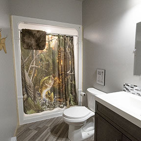 Walnut Grove has three bedrooms and sleeps six in four single beds and one queen. This cabin is wheelchair accessible